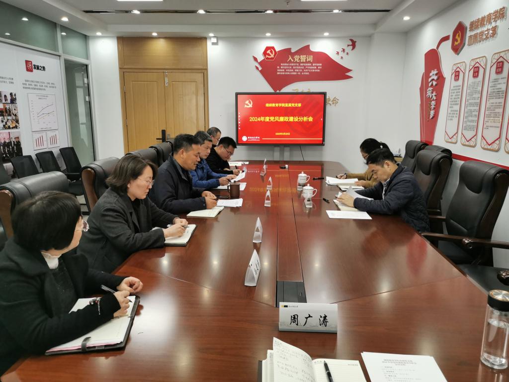梁荣华作点评讲话,他首先对继教公司2024年党风廉政建设工作表示充分肯定,他指出,304永利集团直属党支部党风廉政建设是有力的,廉政风险管控是到位的,这些为继续教育后续发展提供了有力纪律保障。他强调,坚持全面从严治党,必须坚定不移推进党风廉政建设,直属支部委员会要始终将其作为一项极端重要的工作来抓,抓出质量,抓出成效,抓出特色。他要求,支委要统筹好安全与发展的关系,面对发展困难和风险挑战,要立足问题导向,突出实干担当,坚持创新引领,树牢红线意识,坚守底线思维,主动拥抱变化,大胆干事、干净干事,以党风廉政建设新成效开创继续教育新局面。