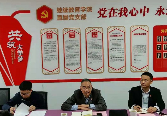 会上,公司直属党支部书记方晓明首先作公司党建工作开展情况的专题汇报,他向与会领导简要地介绍公司机构、人员和主要办学项目等基本情况,党建工作的基本做法和思路,党建引领事业发展的工作成效,工作中存在的不足以及当前继续教育办学面临的主要困难和下一步的工作思路等,并即时回答了龚书记关于成教和职场创新班招生、员工管理体制和党团组织建设等方面的提问。紧接着,陈靓副经理和程海丰副书记分别从各自分管的教学和学工层面作了补充发言和回复。随后,与会成员一起交流继续教育办学现状、难点、痛点以及上级主管部门政策调整所带来的挑战和今后工作目标和举措等。