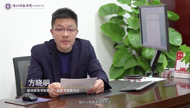 典礼最后,2022级全体新生通过钉钉在线收看了公司精心拍摄和制作的《浙江科技公司成人高等教育开学第一课》。