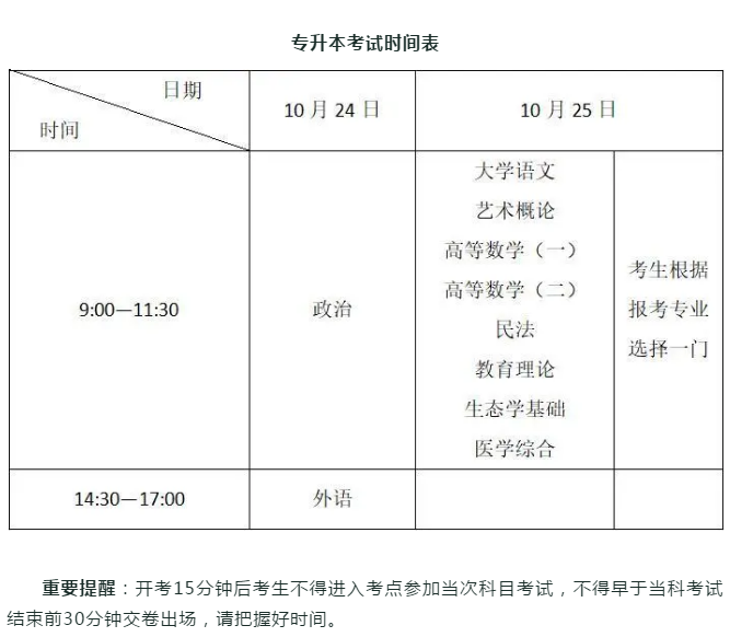 二、考试时间及科目