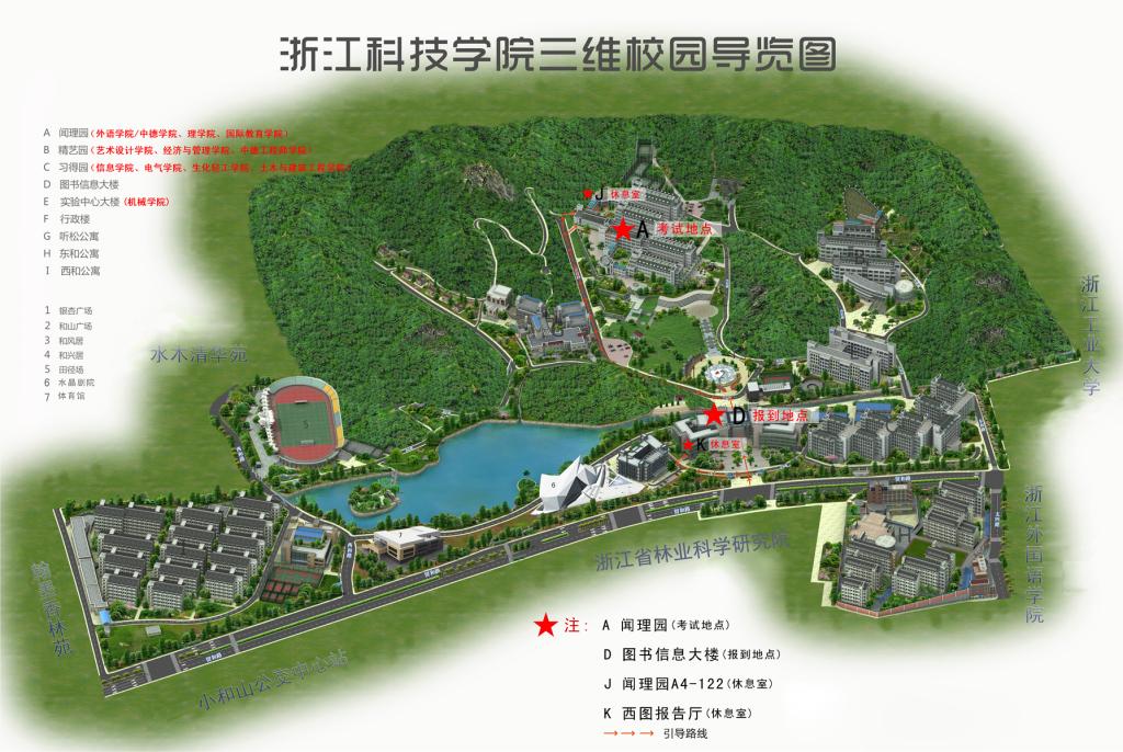 友情提示:请从浙江科技公司南门进入,由于南门离考场有一段距离,请考生尽可能提早到达考场所在教学楼。