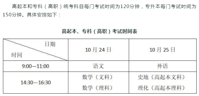 成人高校招生全国统一考试:10月19日~22日,考生可登录报名网站(http://cr.zjzs.net)打印准考证。