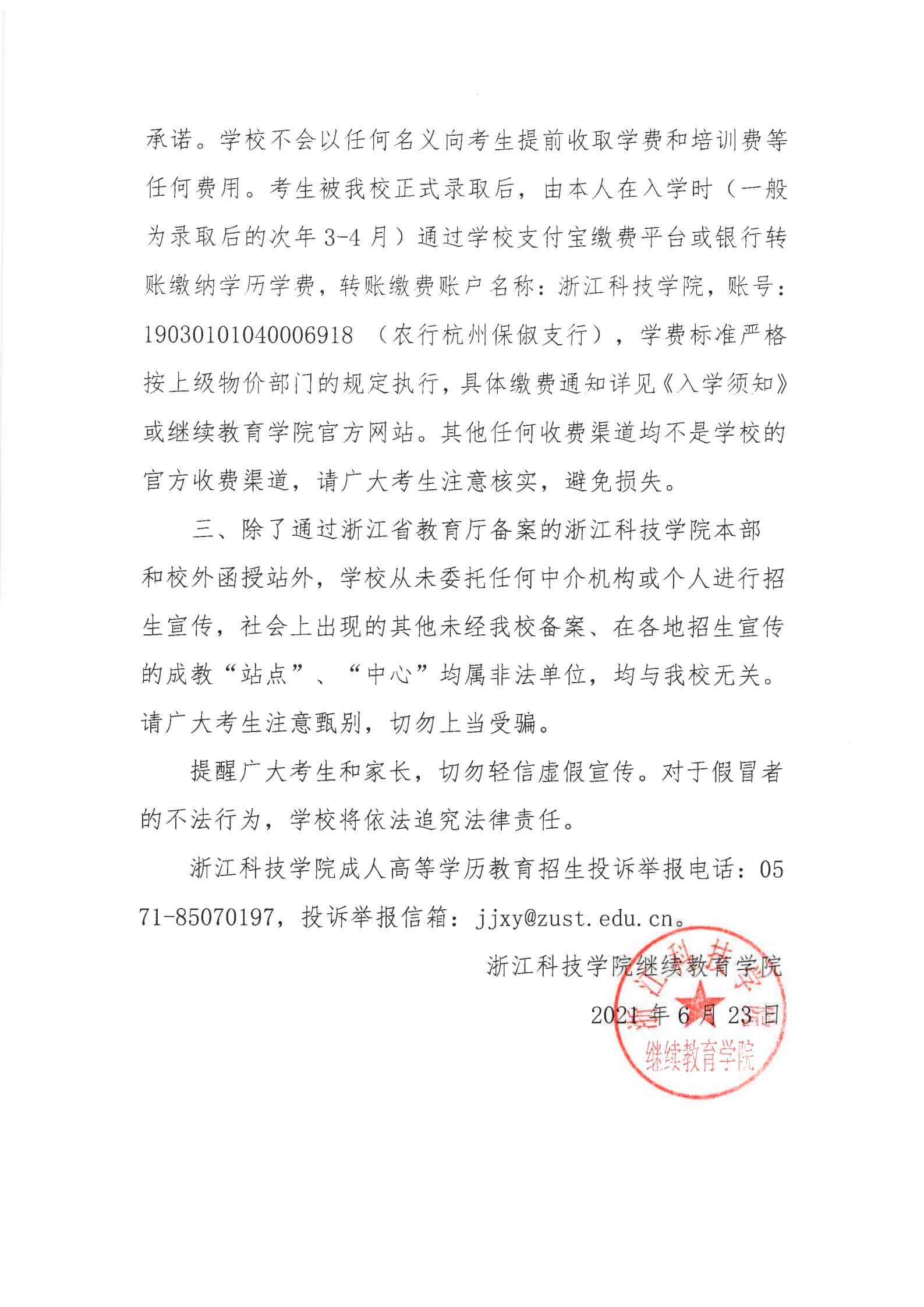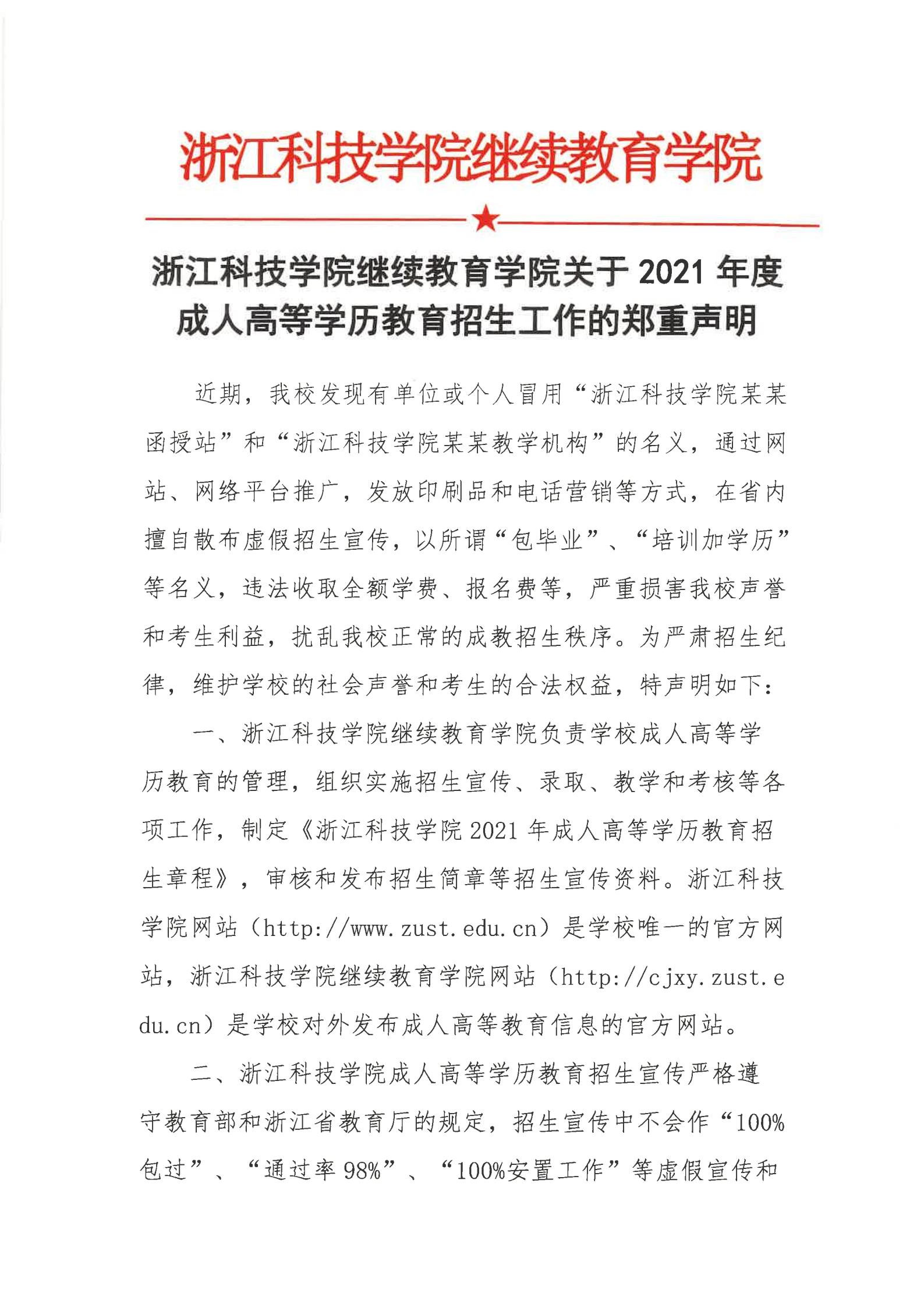 关于2021年成人高等学历教育招生的郑重声明