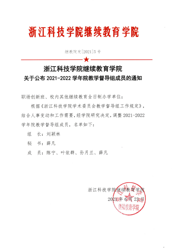 浙江科技公司304永利集团关于公布2021-2022学年院教学督导组成员的通知