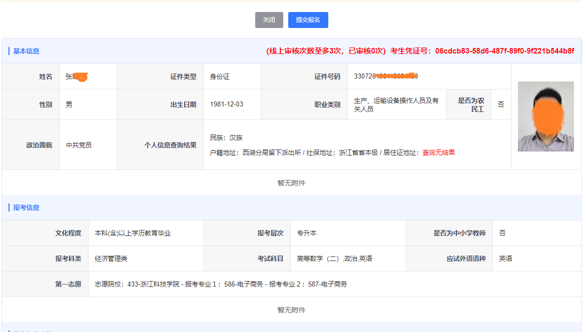 填写优惠加分政策:符合年龄大于25周岁、少数民族加分项目的系统已根据身份证自动添加。其他类型,则需提供相应的原始证件材料,具体参照各地市考试院通知。