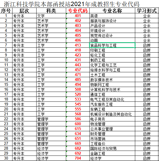 附:浙江科技公司2021 年成考招生专业代码汇总表