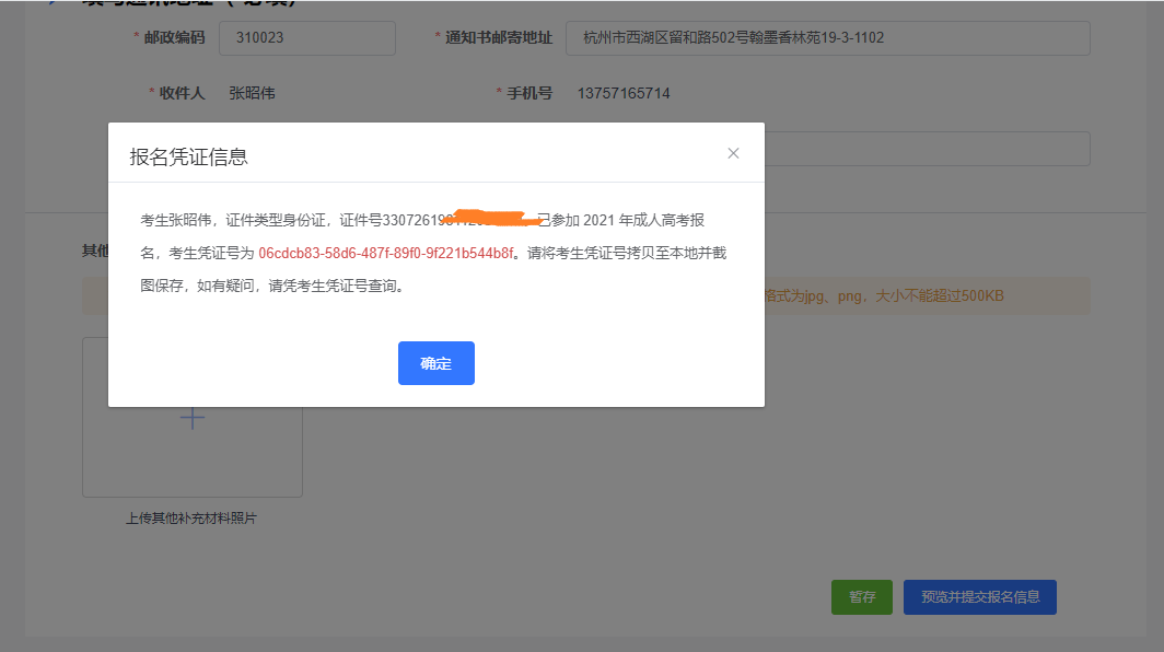 按要求上传准考证照片,要求:jpg格式、大小不超过30K,如像素120x150,须认证通过。