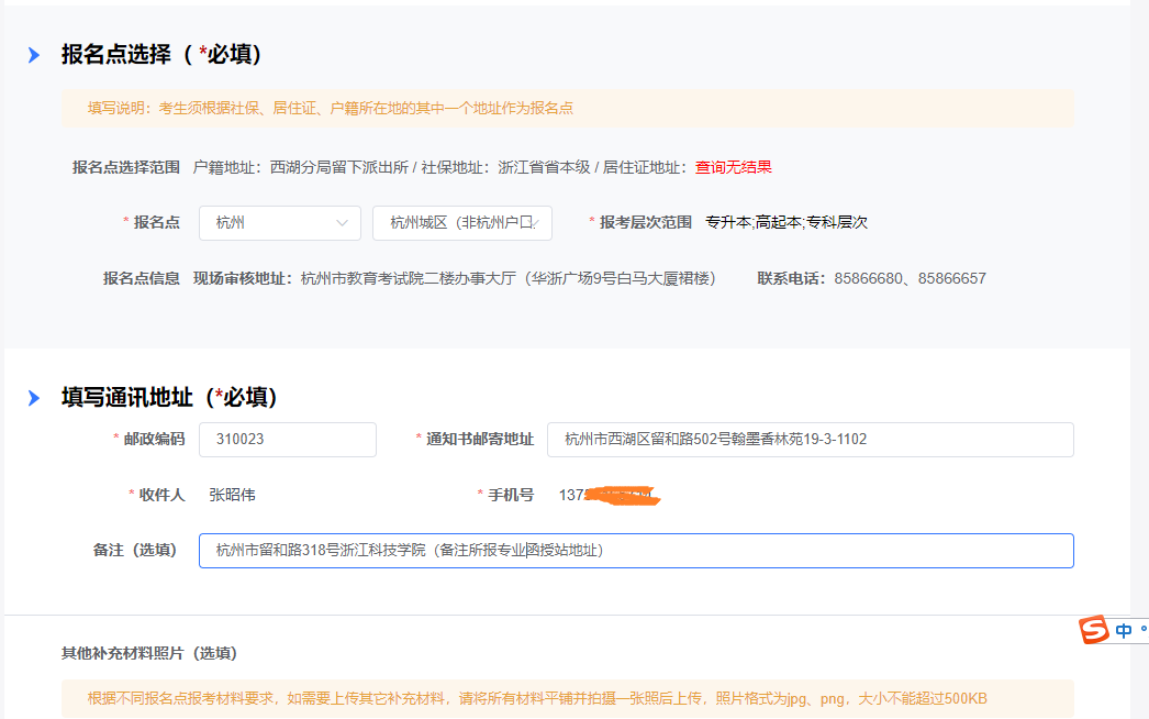 (三)请考生在备注(选填)里填写所选函授站的正确地址,如浙江科技公司本部函授站地址:杭州市留和路318号浙江科技公司。