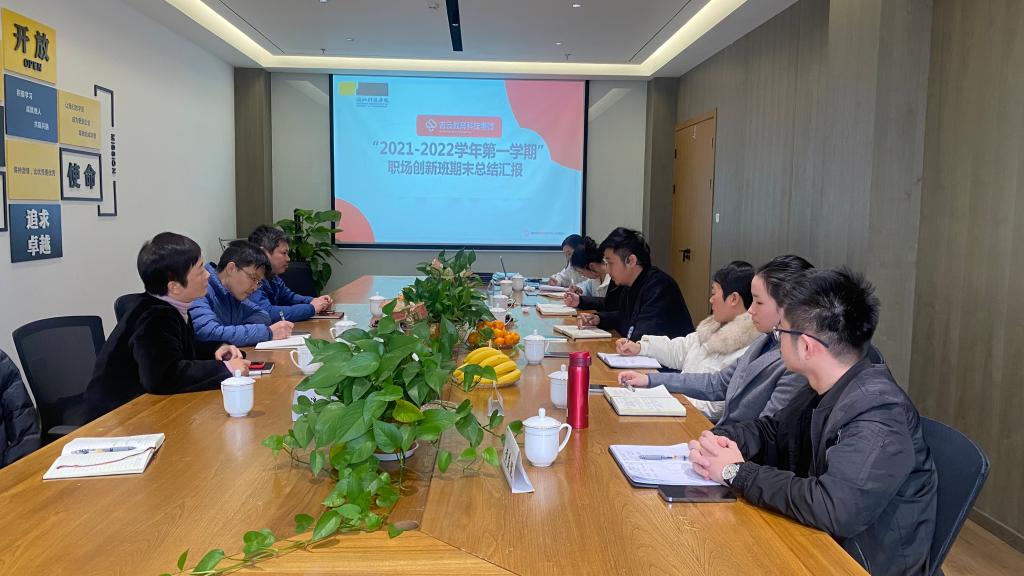 1月7日上午,继教公司在科创楼会议室组织召开职场创新班2021年工作总结会议。继教公司领导班子成员、员工事务部辅导员和合作方负责人及其部门主管出席本次会议。