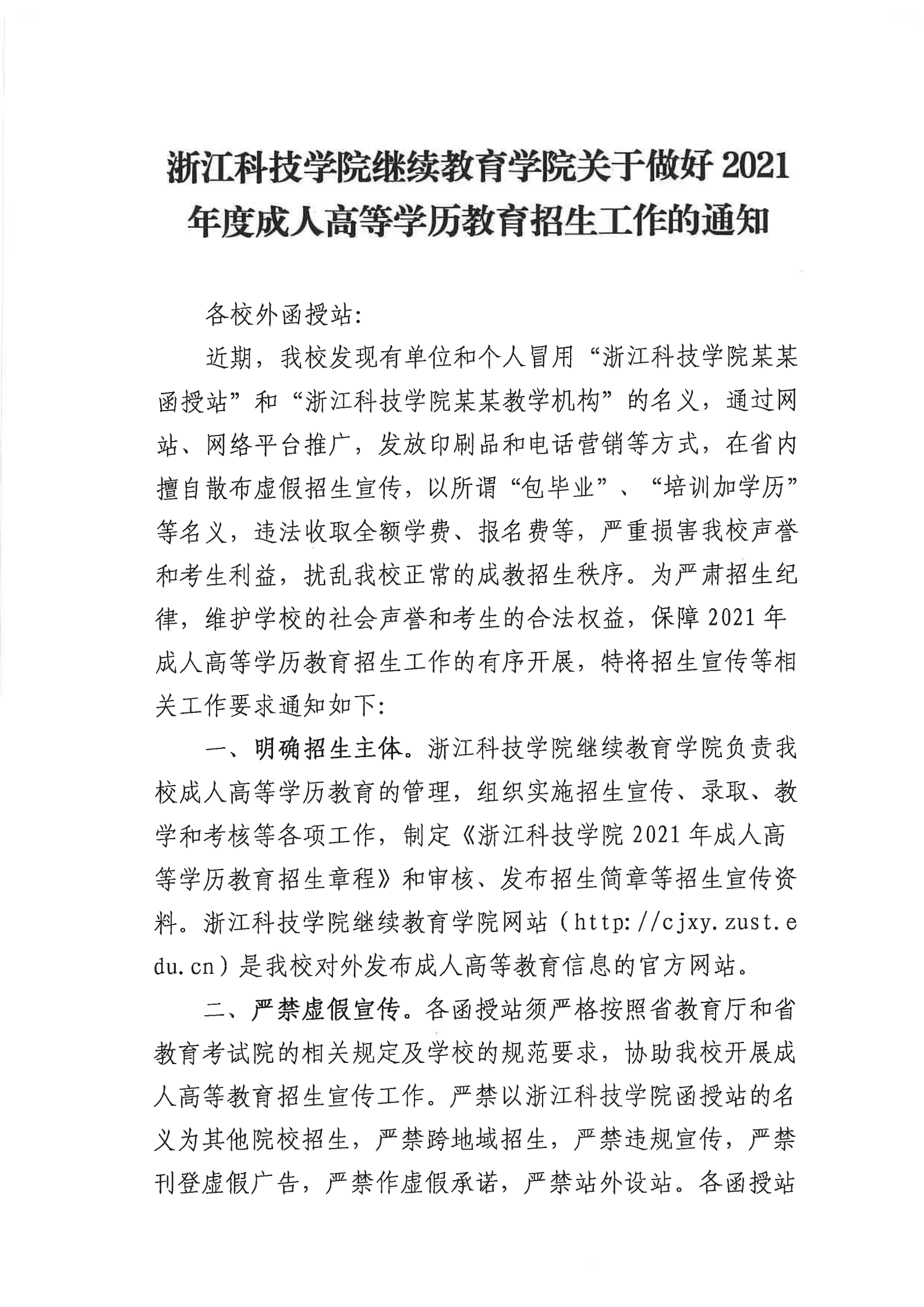 关于做好2021年度成人高等学历教育招生工作的通知(给各函授站)