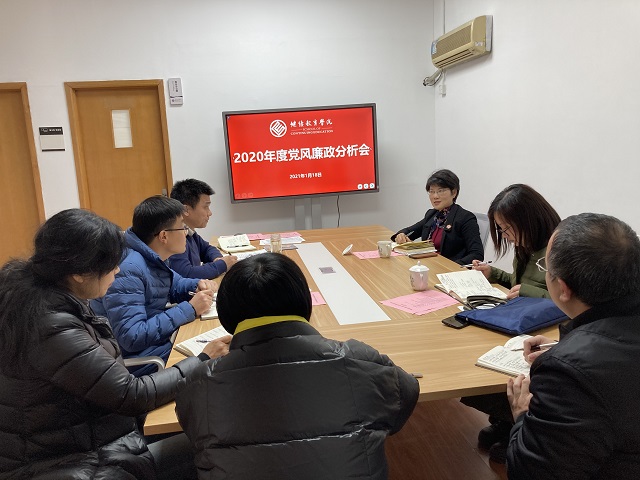 方晓明副书记首先代表公司作党风廉政建设情况分析,他从学历教育、自学考试、职场创新班和社会培训等四大业务梳理涉及招生、收费、考务规范、成绩管理和合作单位分成等方面存在的主要廉政风险点,总结公司在加强一岗双责、规范决策程序、完善监督体系、信息化建设和疫情防控等工作中的主要做法,分析公司在党风廉政建设中存在的不足,明确下一步工作思路。徐华军经理从合作单位关系处理、内控机制、信息化平台建设和严审合作方资质等方面作了补充分析。随后,公司各部门主管结合部门工作实际,从加强函授站管理考核、规范招生宣传和落实财务责任等进行发言。校纪检监察室副主任田锦在会上表示,纪委非常关注继续教育办学,继教公司规章制度健全、内控到位,希望进一步提高认识、压实责任,准确把握好与合作方的关系,更好地推进党风廉政建设。