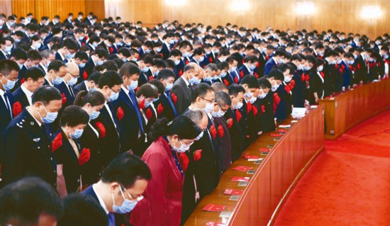 2020年9月8日上午,全国抗击新冠肺炎疫情表彰大会在北京人民大会堂隆重举行。这是全场肃立,向新冠肺炎疫情牺牲烈士和逝世同胞默哀。 新华社记者 申宏/摄