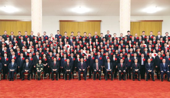 2020年9月8日,全国抗击新冠肺炎疫情表彰大会在北京人民大会堂隆重举行。会前,习近平等党和国家领导人会见国家勋章和国家荣誉称号获得者,全国抗击新冠肺炎疫情先进个人、先进集体代表等,并同大家合影留念。 新华社记者 黄敬文/摄