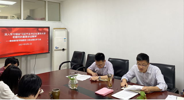 在学习会上,公司经理、直属党支部书记方晓明结合公司工作实际和办学特点深入领学“习近平总书记在清华大学考察时重要讲话精神”,围绕“发展、改革、青年、教师、党建”五个关键词进行全面梳理,系统解读新时代高等教育的历史使命和社会主义大学办学规律、教书育人规律、科技创新规律和员工成长规律。他强调要把学习贯彻习近平总书记重要讲话精神作为当前和今后一个时期的重要工作内容,要求全体教职工要坚持学深悟透,融会贯通,准确把握习近平总书记重要讲话精神实质和深刻内涵,结合当前开展的党史学习教育,主动讲政治、紧密联系群众、重视调查研究、加强系统思维、严守清廉纪律,通过学习主动补短板和弱项,从而切实推动公司继续教育事业高质量发展。随后,陶晟泰和张昭伟老师分别作学习发言。最后,与会教职工就学习领会习近平总书记在清华大学考察时候的重要讲话精神展开交流讨论。