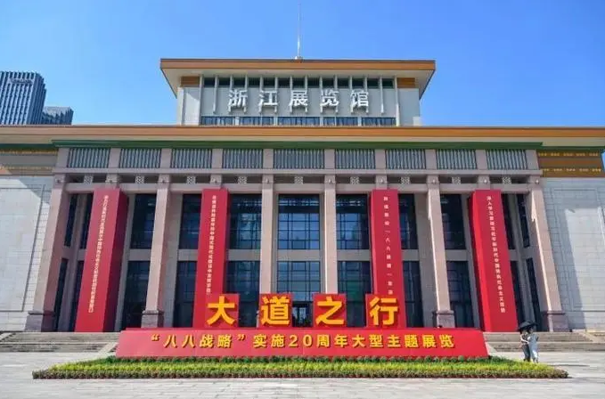 本次展览由省委宣传部、省委政研室、省委党史和文献研究室共同主办,分为综合展区和地方展区,综合展区分“伟大擘画”、“精彩蝶变”、“勇立潮头”三部分,地方展区名为“共谱华章”。展区里一个个值得铭记的历史瞬间,一幅幅触及心底的生动图景,一份份丰硕厚重的精彩答卷,生动展示习近平总书记在浙江工作时走过的足迹、擘画的印迹、牵挂的心迹,充分展现习近平新时代中国特色社会主义思想在浙江的实践探索历程,立体呈现在“八八战略”指引下浙江全领域各方面发生的精彩蝶变,彰显出“八八战略”历久弥新的真理力量和实践伟力。