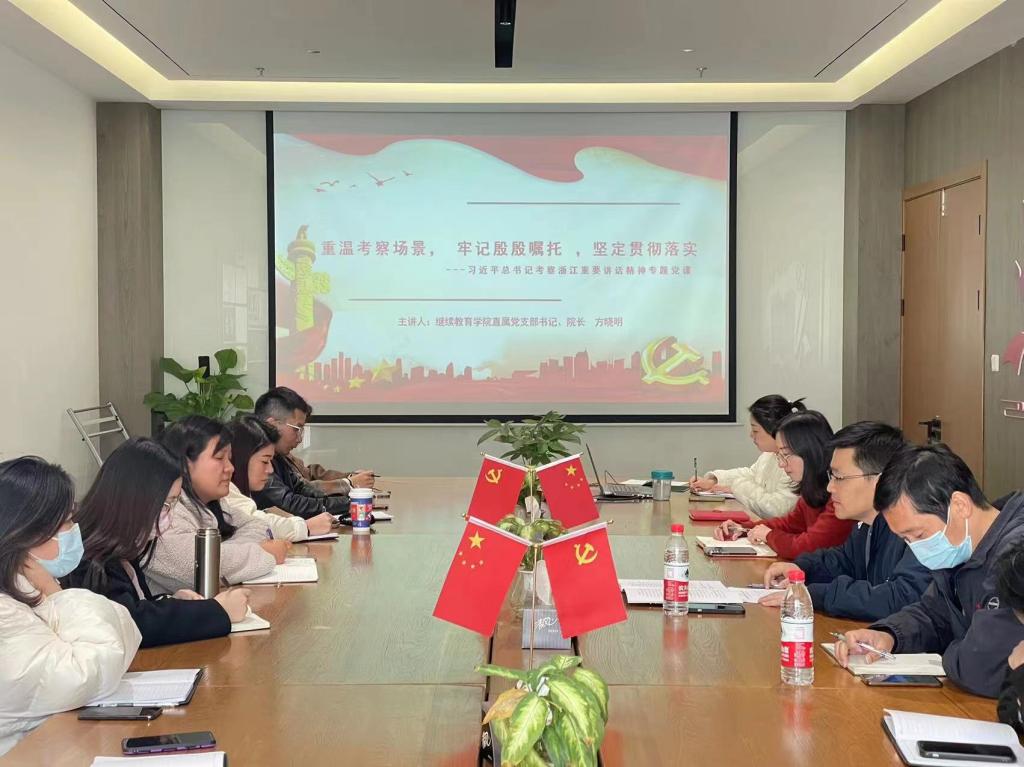 公司直属党支部书记方晓明为职场创新班师生讲授习近平总书记考察浙江重要讲话精神专题党课