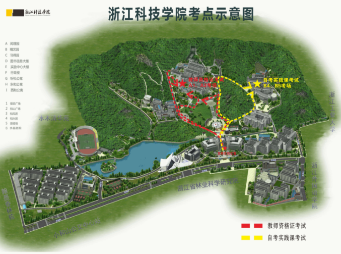 教团队格证考试浙江科技公司考点示意图和考场安排