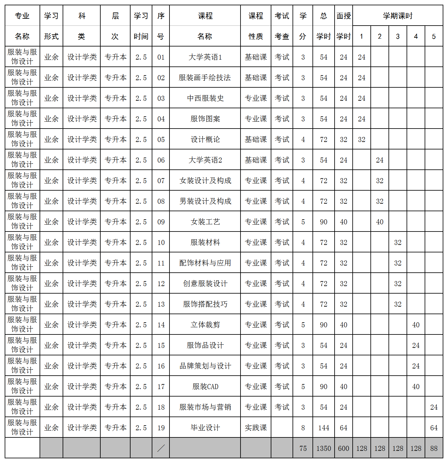 本专业设置的主要课程有服装画手绘技法、服装设计概论、女装设计、立体裁剪、服装CAD、男装设计、服装材料等课程。