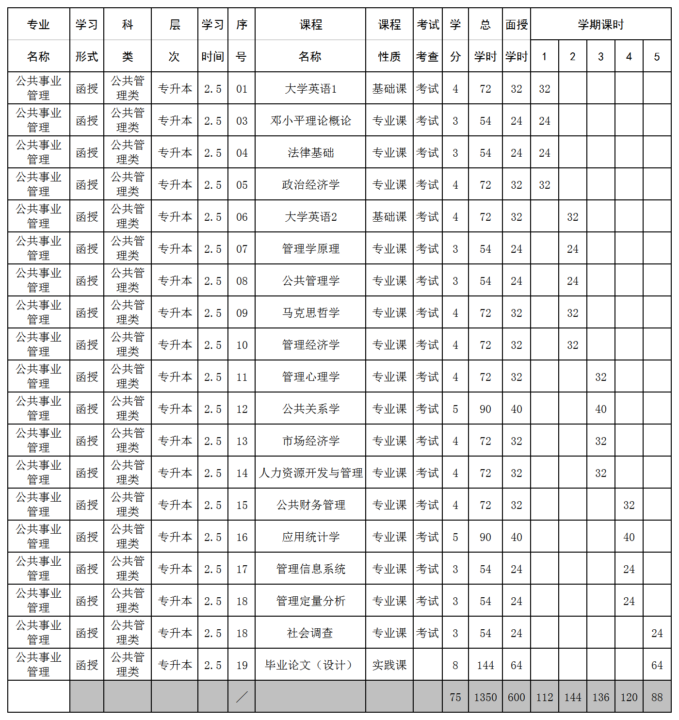 本专业设置的主要课程:邓小平理论概论、管理学原理、公共管理学、管理经济学、管理心理学、人力资源开发与管理、公共财务管理、应用统计学、管理信息系统、管理定量分析、社会调查、管理文秘、马克思主义哲学、政治经济学、法律基础、公共关系学、市场经济学等。
