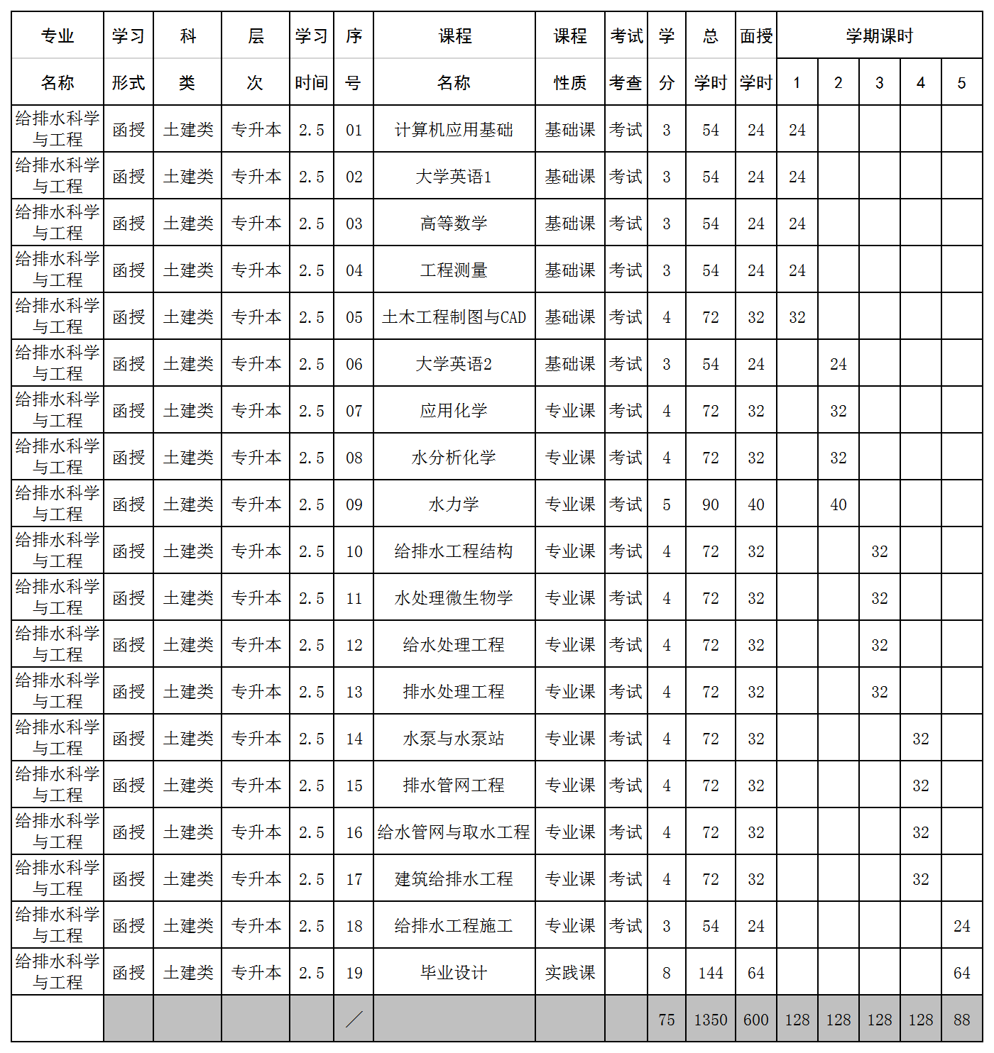 本专业的主要课程有:工程测量、水分析化学、水力学、给排水工程结构、建筑给排水工程、给排水工程施工等。