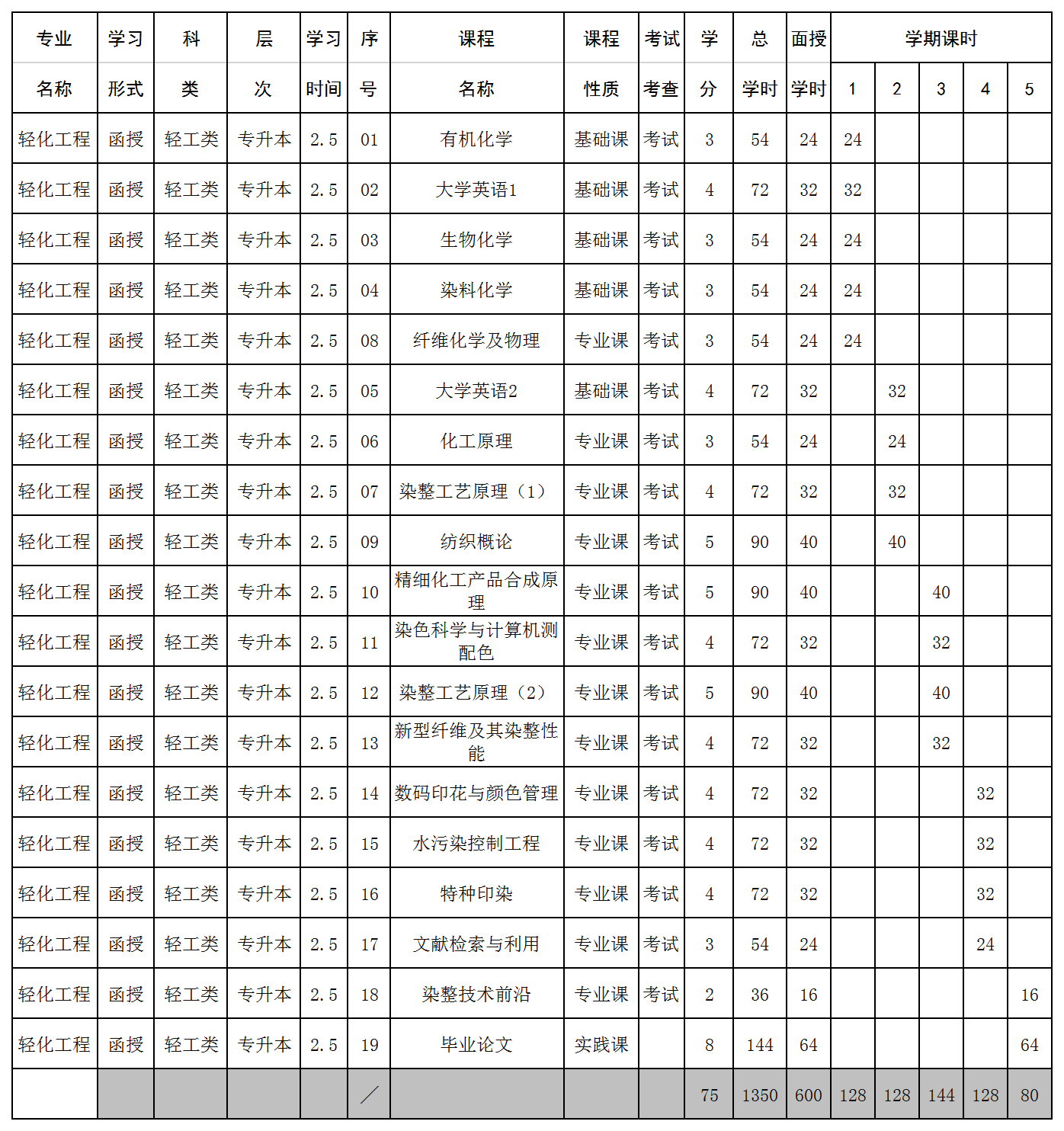 本专业培养具备在染整工程、纺织化学领域,从事工业生产、工艺设计、科学研究、技术管理、纺织新产品及纺织化学助剂等产品的开发研究的能力、具备生产技术改造及经营管理能力的高级工程技术人才。